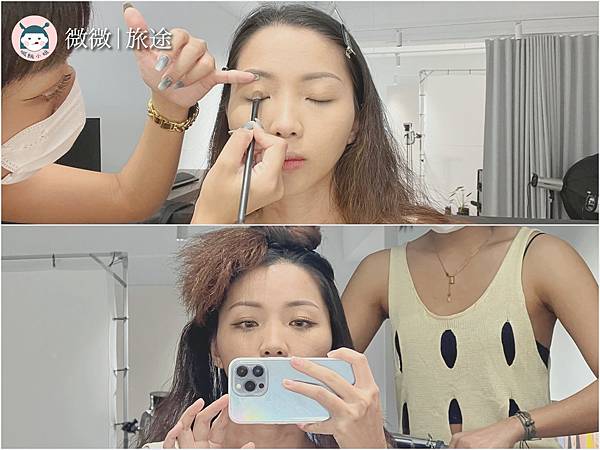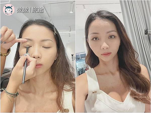 接著就入座要給化妝師發揮巧手啦,不得不說真的畫得超級仔細大約一個小時,睫毛刷完是根根分明的那種,完全不用戴假睫毛!天那!是不是自己的化妝技術要再來練練!😭