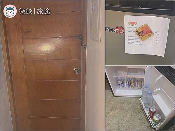冰箱裡的飲料是要錢的哦,比較特別是後面還有一個後門。