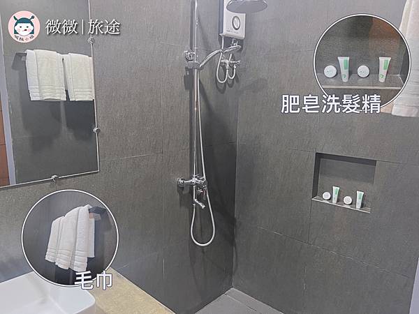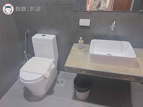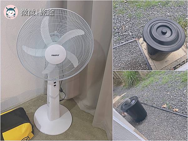打開的左手邊有一個小桶子,裡面是儲備水,因為在巴拉望其實某些時候會斷水斷電,某些店家會有自己備用發電機,有些沒有,這家有準備應對措施,電風扇蓄電式的,還有照明功能。至於你問我遇到斷水電頻率,可能人品,我們這一趟只有愛尼島遇到一個小時。(咦,有回答跟沒回答一樣😂