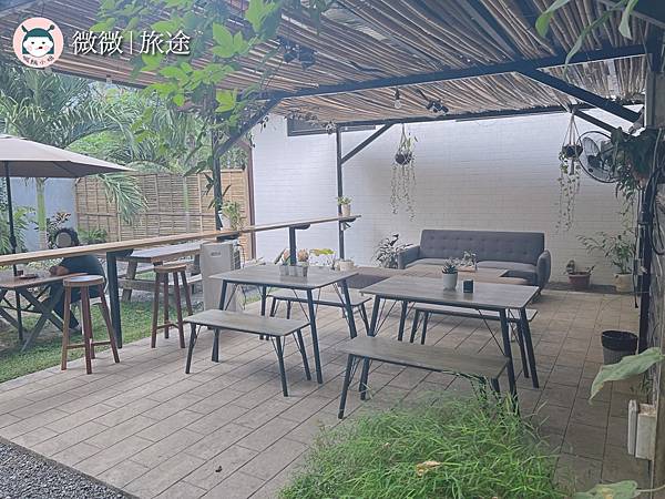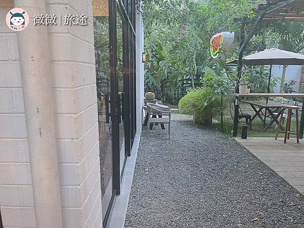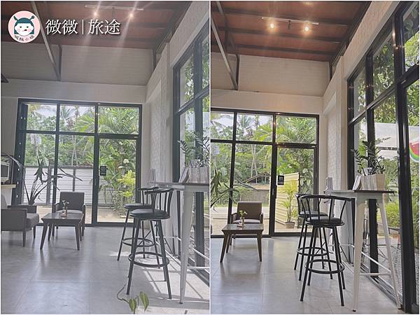 這家住宿很特別,前面是咖啡廳,後面是入住的房間,咖啡廳的落地窗跟植栽,很愜意哦!