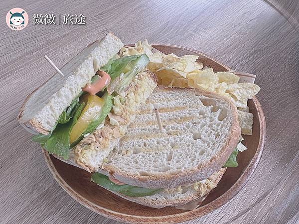 <Tuna sandwich with chips鮪魚三明治佐薯片>三明治有生菜番茄黃瓜跟鮪魚配上千島沙拉,吃起來還不錯囉
