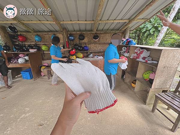 在櫃台確認要的項目付款後,就可以去領手套+安全帽了。