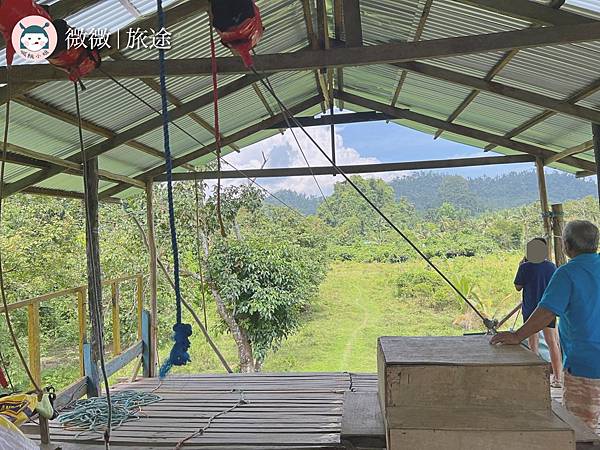 另一側就是滑索的地方囉,剛開始站上去真的會心裡一驚,但往下滑很快比較沒那麼抖,速度慢一些。