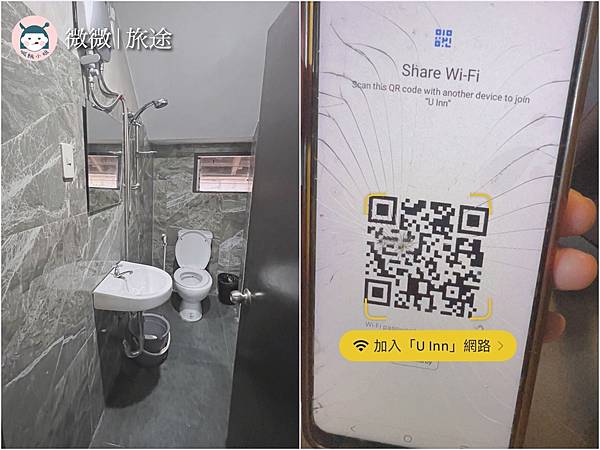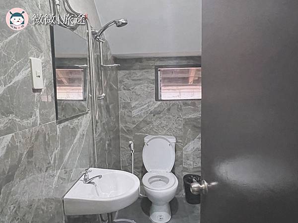 浴室的話不大,但熱水沒問題,水量稍小一點點。住宿沒有附基本的盥洗用品哦,所以記得要帶沐浴乳、洗髮精、牙刷、牙膏...等。