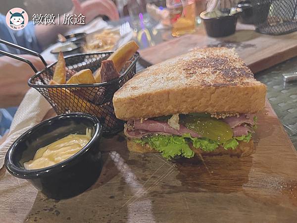<Pastrami Sandwich with fries 煙燻牛肉三明治>這道三明治的燻牛肉配上生菜黃瓜,旁邊一樣有附炸物