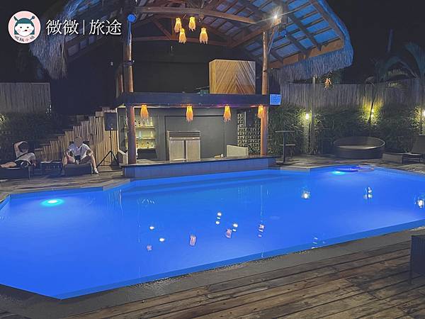 後方就是這個半開放式的泳池啦,我們到的時候剛好很多當地的小朋友在裡面玩水,還蠻大的,感覺超級適合舉行大型派對呀。