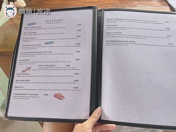 菲律賓跳島巴拉望這趟,最讓人意外的就是這個比較不觀光的小鎮巴頓港,在地人推薦的餐廳,在海邊第一排,有絕佳的海景,還有多樣化的選擇菜單哦。