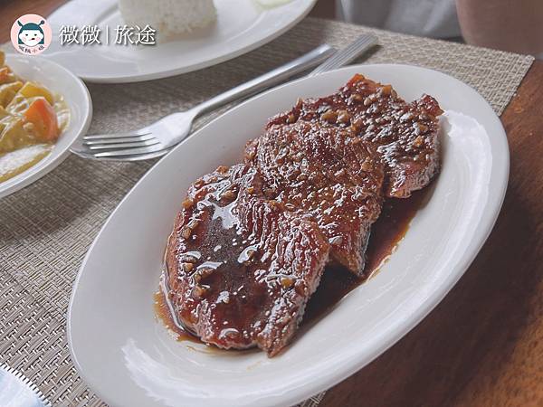<Honey Garlic Pork 蜂蜜蒜味豬>三片用蜂蜜甜甜的醬汁煎的豬肉,雖然稍微硬了一些些,但味道還不錯囉