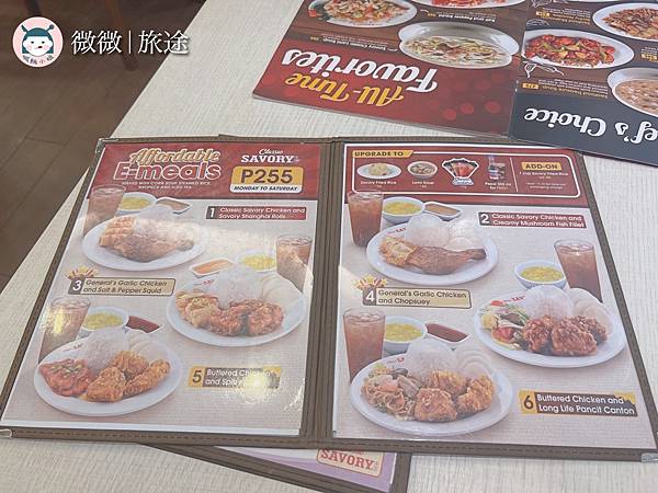 完整菜單放在最後,選擇蠻多樣的很像中餐,但結合當地口味變化,飲品選擇也很多樣。我們點了兩個套餐組合,等不及要來開動囉🥳