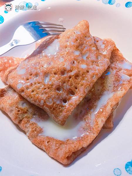 餅皮吃起來跟法式薄餅不太一樣 上頭通常會有有空氣小洞 不會有特別煎的焦脆的口感 但每家的作法還是不同哦 🤔