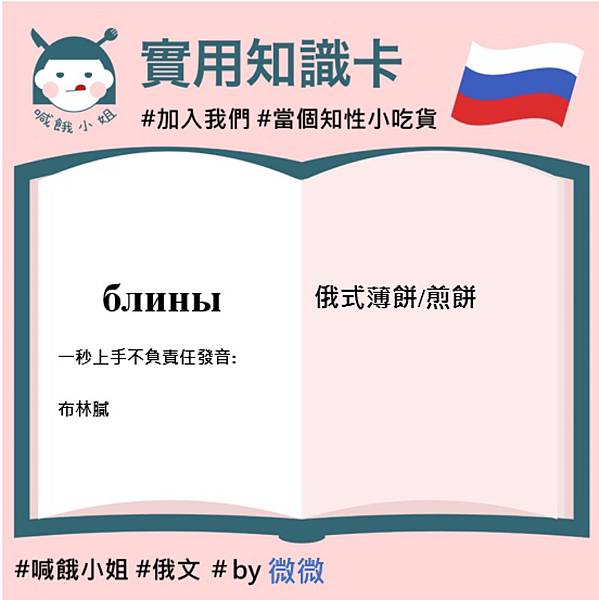 #喊餓小姐 #喊餓小姐實用知識卡 #當個知性小吃貨 #俄語教學 #俄文教學 #俄語字卡 #俄文字卡 #俄文單字 #by微微