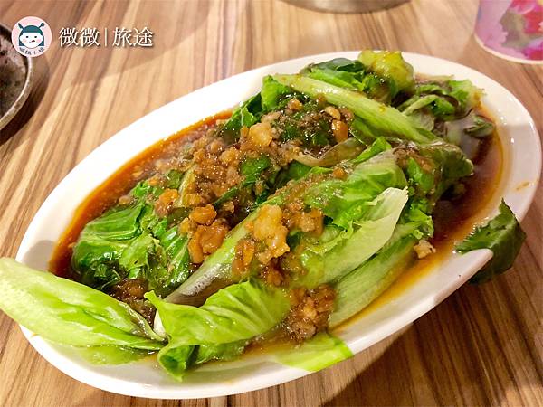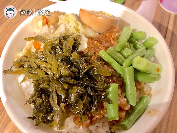 <滷肉飯大>第一個當然是分享店家招牌滷肉飯,上頭還有附上酸菜和半顆滷蛋,滷汁的量剛好,滷肉是肥瘦參半的碎塊,我個人蠻怕肥肉的,這種剁碎的吃起來不會害怕,還不錯囉