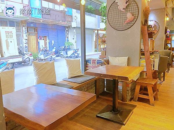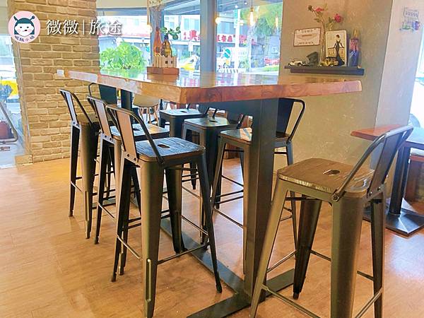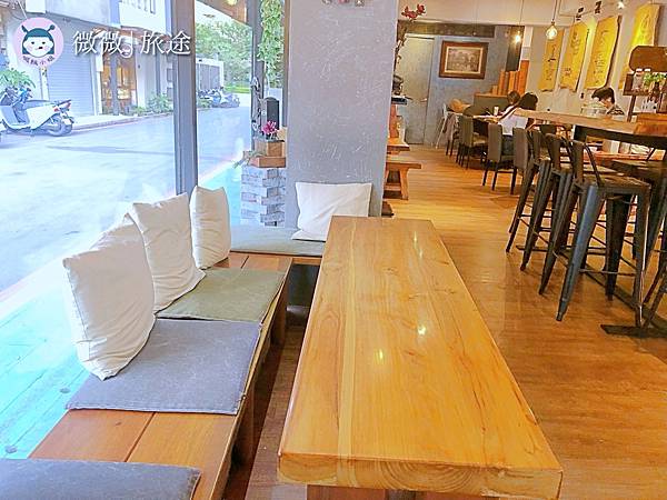 走進店內以木質搭配深色調的工業歐風。蠻多種座位類型的,高腳椅或靠窗的沙發座椅都有。