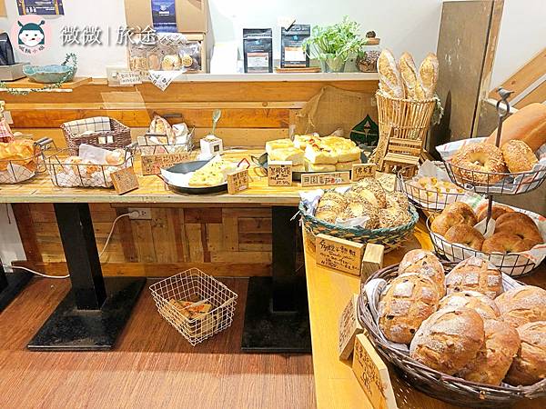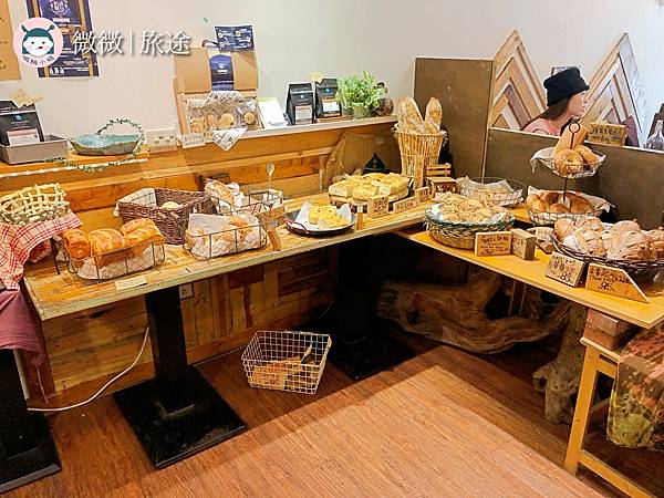 一走進店家,可以看到店家走整個木頭鄉村風,讓人有種誤以為來到歐洲麵包店的感覺。
