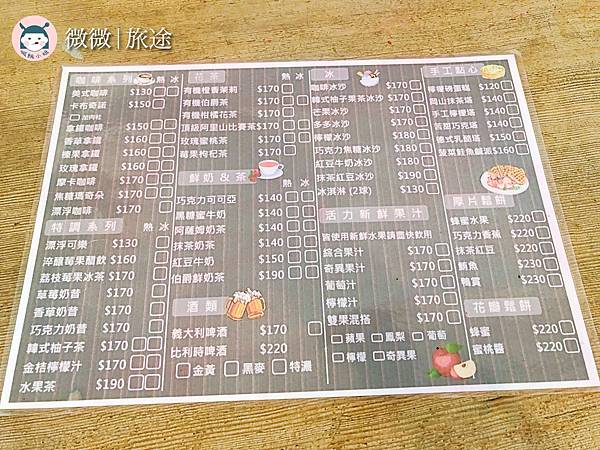 店家是採半自助式的,所以記得先到櫃台取餐單,畫好再到櫃台先點餐結帳,等著飲料上桌囉。