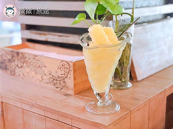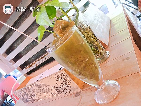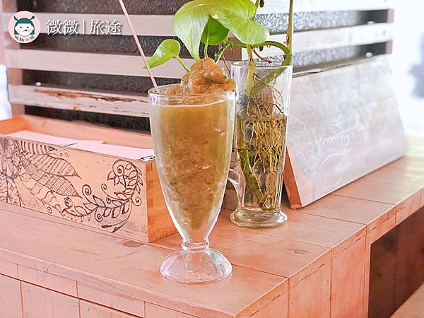 <抹茶紅豆冰沙>夏日當然要來杯冰沙清涼一下,味道部分可能因為沒有奶味的關係,跟期待的冰沙不太一樣,有一點甜,喝起來像小碎冰跟抹茶紅豆有點分開的感覺,有點小小失望![]()