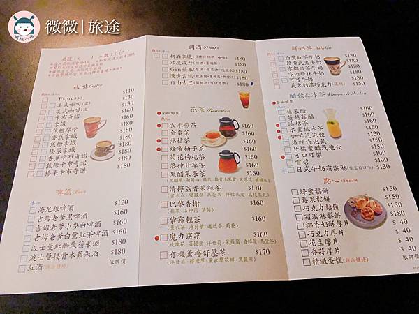 菜單飲料的選項很多種,也有點心鬆餅厚片。