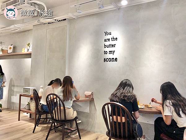 大約有十多個座位都以兩到四人為主,牆上的標語很可愛,你是我司康的奶油