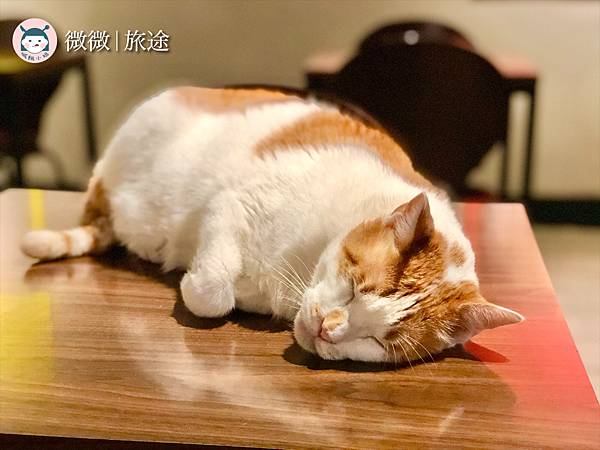 貓咪慵懶地坐在桌上,也很有規矩,如果有客人在用餐,不會亂跑上桌哦!