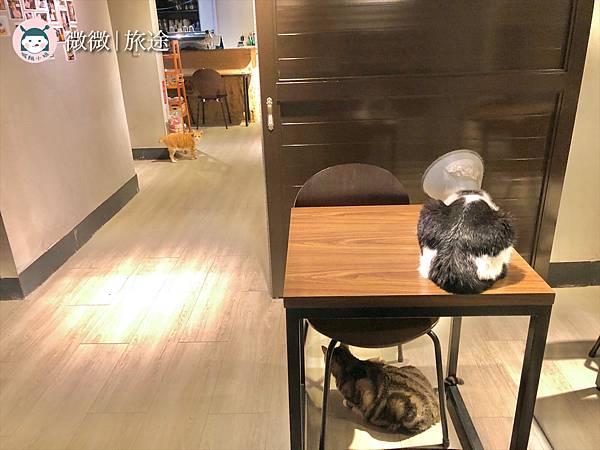 看到在店裡活蹦亂竄的貓咪,牆壁還有跳台,這裡的貓咪真的很幸福耶![]()