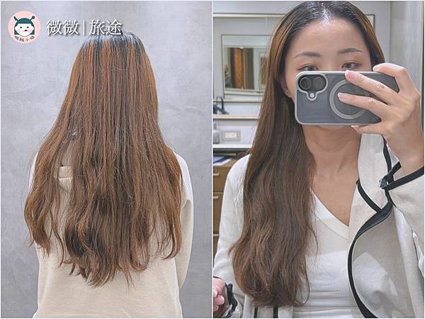 在過程中可以感受到JV的經驗值滿滿,之前染髮常常會有頭皮刺痛不舒服的感覺,JV小小分享她的小技巧從哪邊先上色,可以大幅降低對頭皮的刺激不適感!果然髮型師的經驗還是超級重要!在歷經了幾個小時後,將江~煥然一新的感覺登場啦~