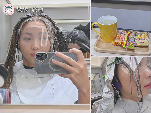 接著就開始施工啦,臉的前面都有貼上防護透明膜,不會沾到臉上跟眼睛,耳多也有耳罩,不會接觸肌膚刺激!還有小點心跟飲料可以享用哦~