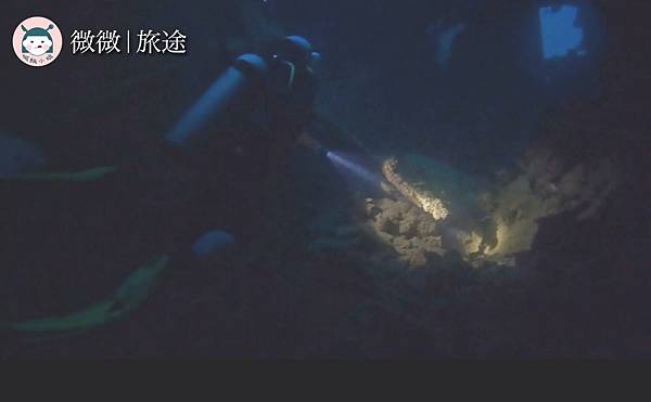 沒錯~因為深度比較大,所以我沒有帶自己的攝影器材下去,第一潛其實感覺還蠻放鬆的,原本以為船艙內會很黑,會不會害怕幽閉,但沒有其實還是會透過一些光線進來,而且還有手電筒,看手錶這一潛最大到30.3米,總共潛了41:50分鐘~在做五米停留的時候,會有繩子可以抓著,不用怕自己漂上去囉~忘了跟大家提醒一下,可以在開始潛水跟教練對一下手勢,通常都會確認殘壓,但各國比數字的習慣有一點不一樣,我的潛伴就讓教練誤會以為他的殘壓可能不夠,一直拿的備二極頭要準備給他用