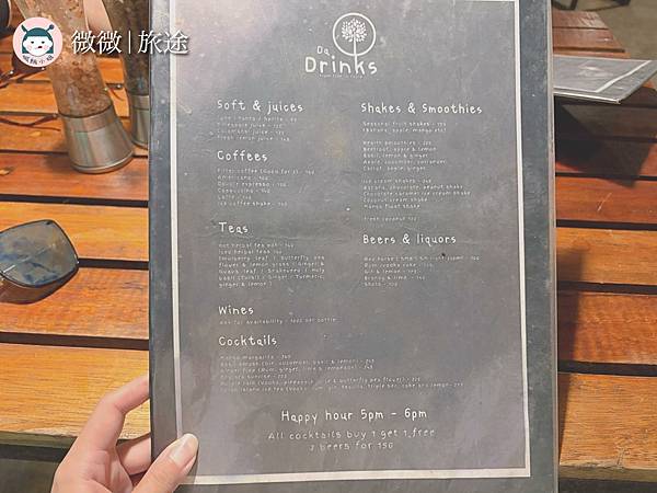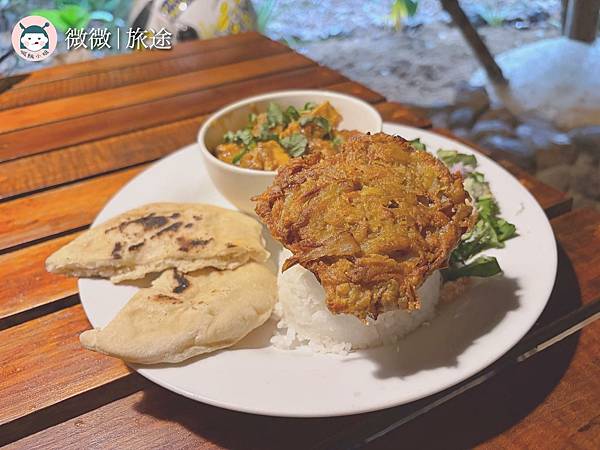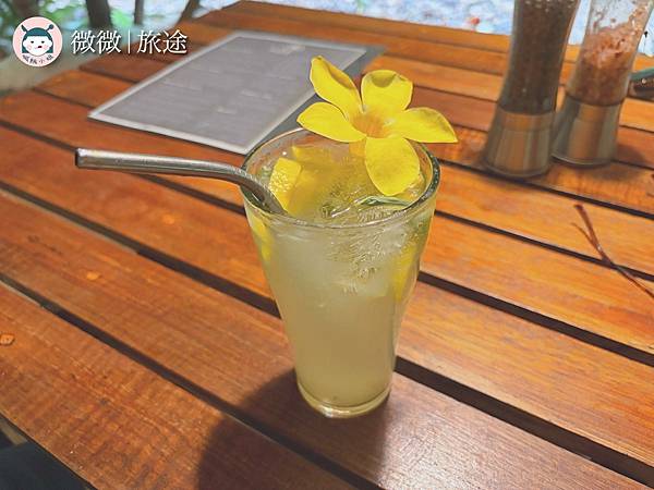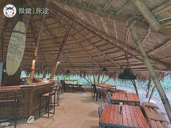 這家其實也是一個住宿飯店,主打都是環保飯店,打造得非常有特色~唯一小小可惜因為是戶外空間,蚊子真的蠻多的,但店員很快地看到我們入座就點起了很多蚊香,幫助蠻大的!