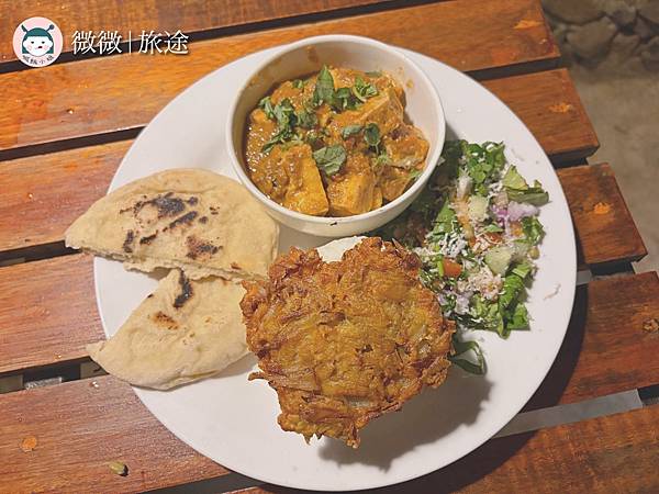 <Mountian mains-Tikka Tummy香料胃>這個印度咖哩還有附上印度烤餅,咖哩麵有附上豆腐,豆腐吸滿咖哩湯汁,是偏油豆腐的口感;味道如果你是在期待跟印度餐廳一樣超級重香料可能會稍微失望一點點,覺得比那個口味清淡多跟比較沒有奶味或優格味;但整體來說吃起來很特別,也還蠻驚艷的