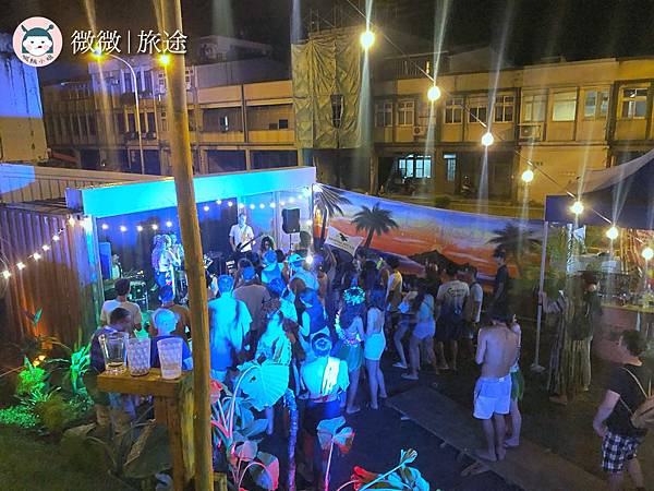 可以看到大家都是海灘風,完全就是讓人放鬆的度假感~下面的圖是另一天的現場演場,就有放桌子,可以在第一排聽囉!