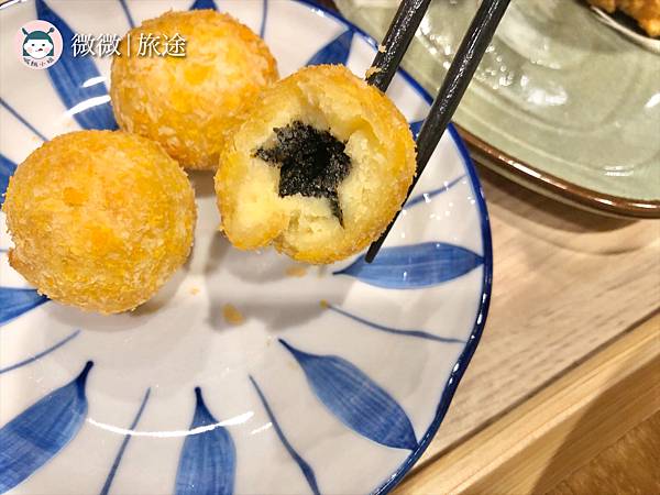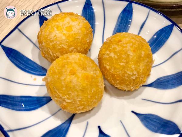 <地瓜芝麻球>有點像地瓜球哩,只是炸皮多帶點顆粒口感,裡頭附上甜芝麻
