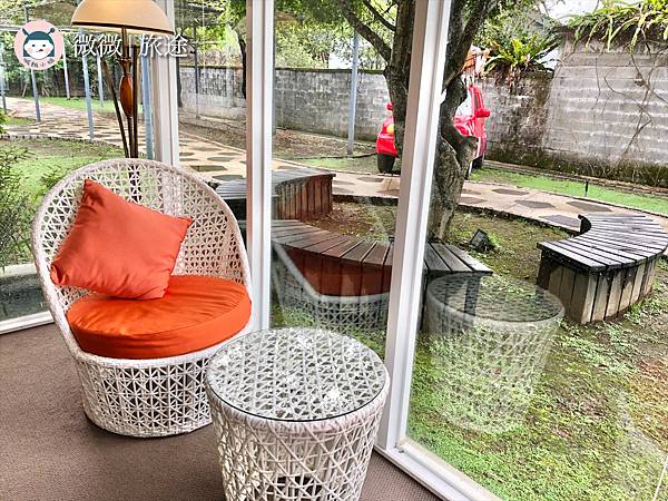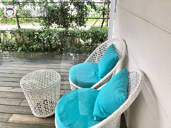 戶外還有兩個小沙發椅子,沒有戶外座位區哦!