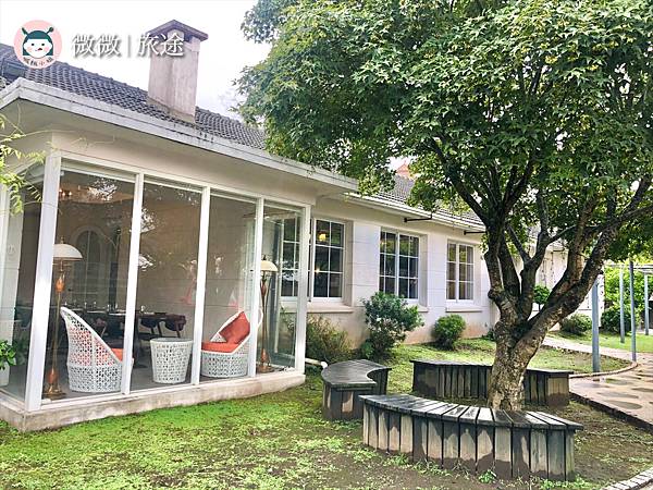 文創園區還有咖啡,和一排落地窗的座位哦~