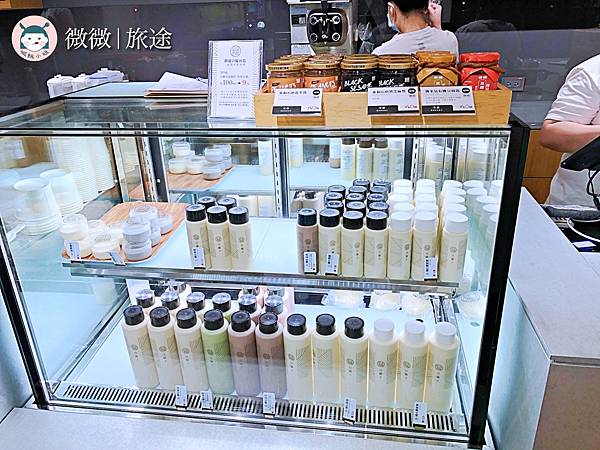 冰櫃裡還有各式豆漿,居然還有可可亞口味。