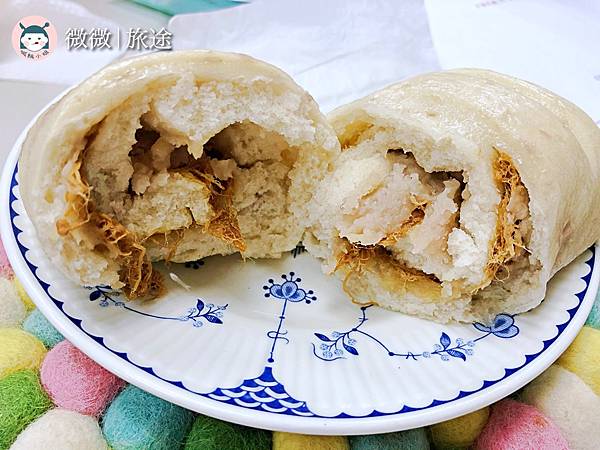 打開來有芋泥跟肉鬆,不是那種吃起來很膩的重口味,是淡淡香香的,當早餐吃很滿足呀![]()