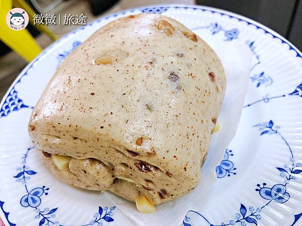 <蔓越莓起司饅頭>這款算是有點西式麵包混入饅頭的口味,有點像在吃雜糧饅頭,但更為Q彈的口感,還有起司和蔓越莓