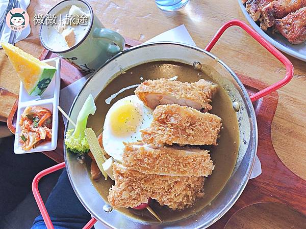 <日式炸豬排咖哩+滑蛋>不得不說,這個咖哩的居然有一點中藥味,我朋友有一點點無法接受,是還蠻特別的,但有點不合胃口