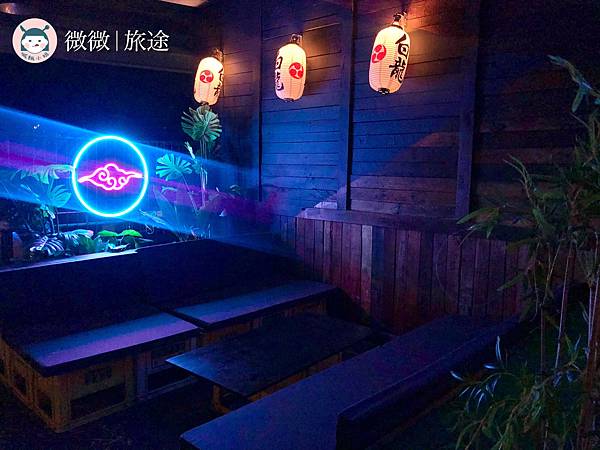 店家位於圓山的Maji 集食行樂裡面,從Google地標上找不到,但只要走到最裡面位於左手邊的側邊,霓虹燈光很好找,店名叫「Haku」也就是白龍的意思,帶點日式風格的酒吧。
