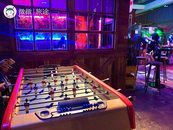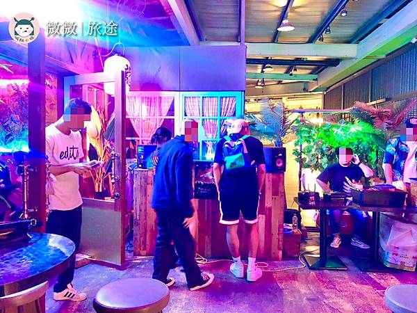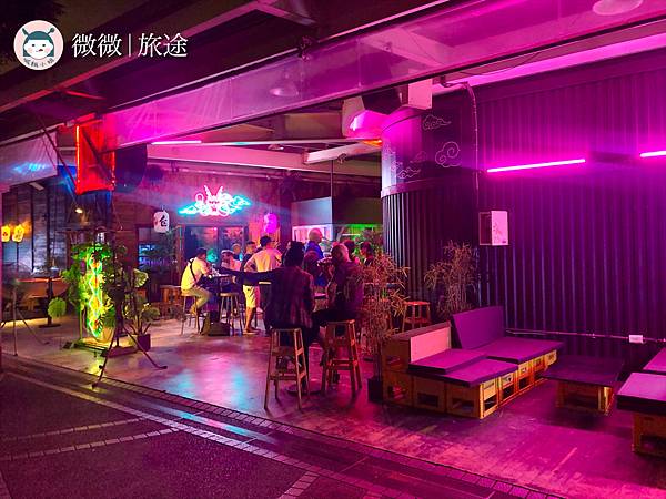 整個酒吧半開放式,有戶外的座位區,外面也有高腳桌大家可以站著閒聊,還有現場DJ放音樂。