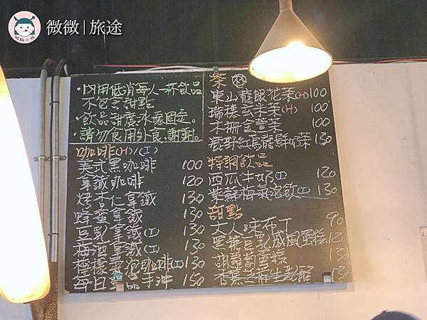 菜單位於吧台後面的黑板上,每個人都低消一杯飲料哦!飲料的價位大約落在一百多左右。