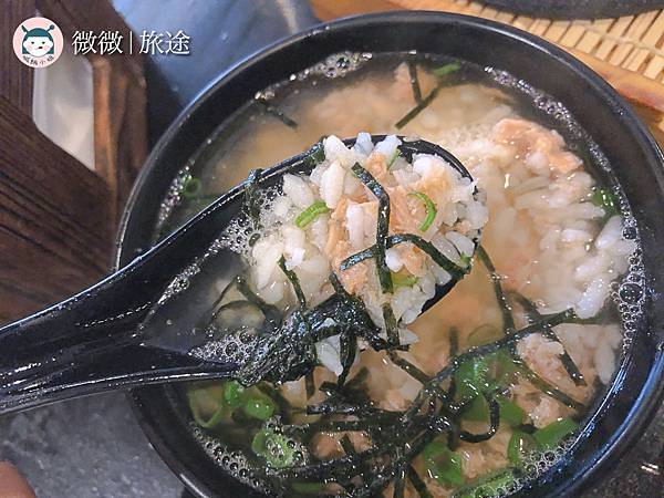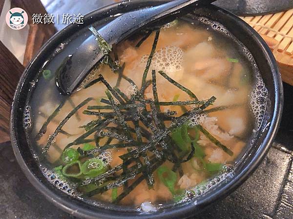 <茶泡飯-鮭魚>我自己個人是鮭魚的愛好者,超級愛吃茶泡飯的,但個人覺得這家的米偏軟爛,湯頭的幾乎沒有茶香,有一點點小失望