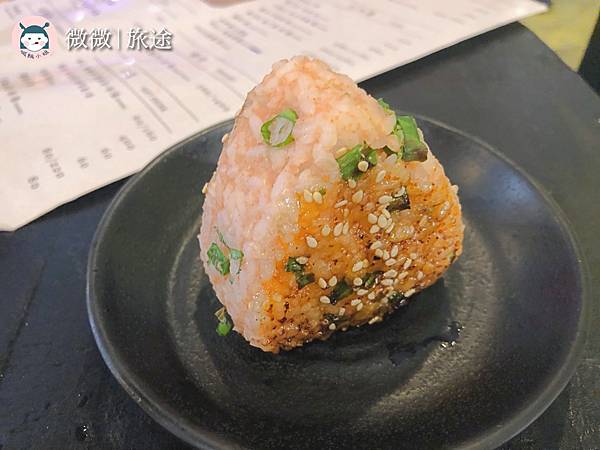 <烤飯糰-明太子>居然只有兩面烤過,但沒有到焦脆,米變得有些太黏牙,嗚嗚,有點失望