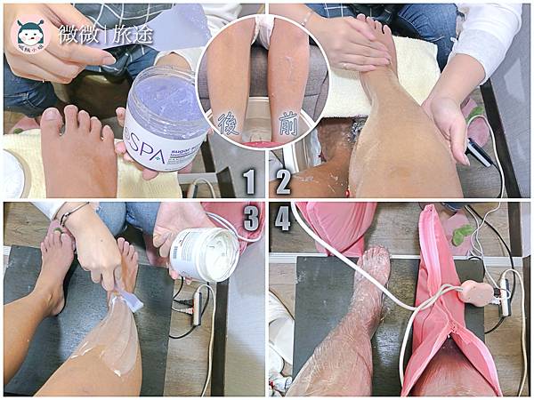 把不該留的都清爽去掉後,就要來保養呵護啦~使用有機蔗糖薰衣草的去角質,從膝蓋到小腿,溫柔的去角質,還會特別加強膝蓋部分,美甲師剛去完一隻腳時,馬上兩腿的色差超明顯,平常真的太偷懶,從來沒再去角質!再敷上足部泥膜,靜置熱敷十五分鐘,就完成啦![]()