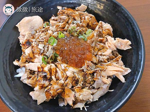 <鮭魚滷肉飯>拌炒過很香的鮭魚,上頭還有鮭魚卵,吃下去很香