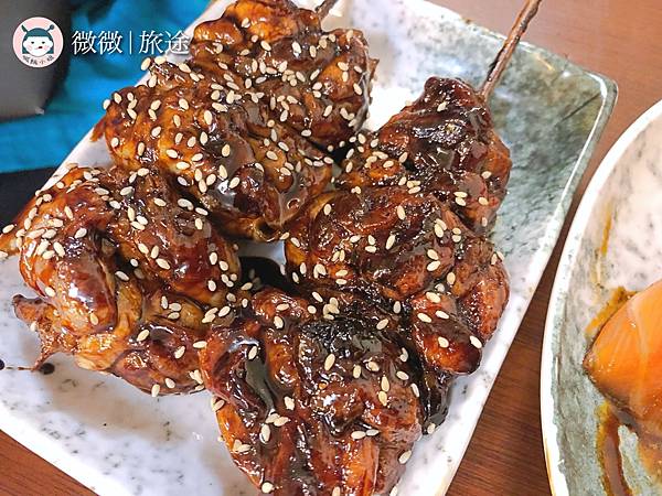 <雞肉串燒>這個也超級推薦大家必點,甜甜閒閒的醬汁,烤得很嫩很香