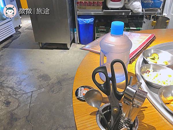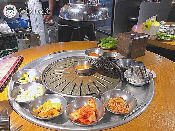 這邊的烤肉是要自己烤的,所以餐具和烤的工具,都放在旁邊囉~
