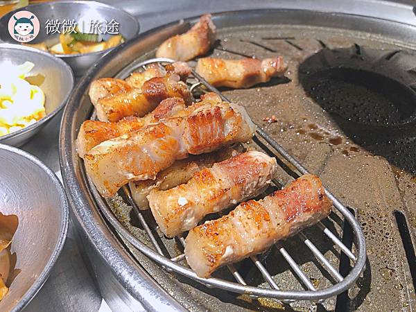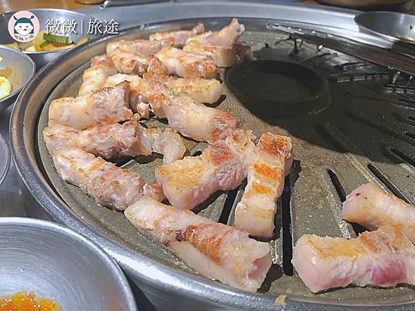 <招牌豬五花>看著這肥滋滋的豬五花,烤的外面一點焦脆,好吃哦~最怕那種豬的奇怪味道,這個完全沒有,肥肉跟瘦肉的比例剛好,不會覺得噁心