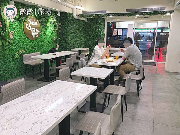 整個店家裝潢算是現在最流行的網美店裝潢,綠色植物牆面和大理石桌面。
