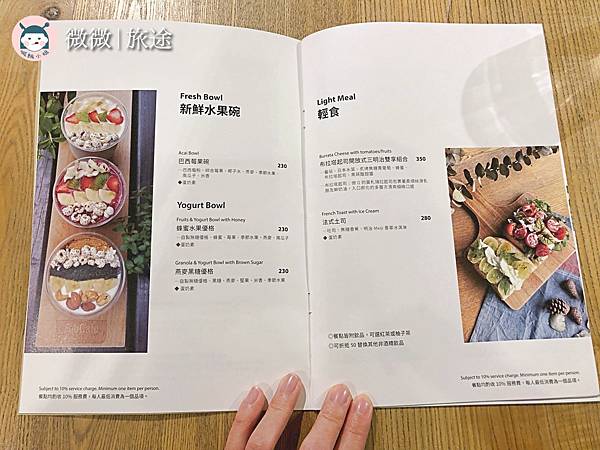 整個餐廳的座位不算多,有兩人和四人桌。完整的菜單就放在最後,大家可以參考看看,有簡單的輕食和甜點,也有飲料。點完餐後,餐點陸續上桌囉~
