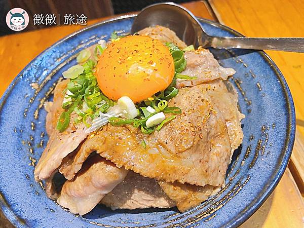 <豬肉蓋飯>上頭的蛋黃慢慢流下來就讓人直吞口水,肉配上蛋汁更香,配上下面的白飯,會扒飯一口一口